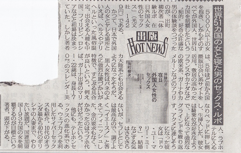新著「体験ルポ 在日外国人女性のセックス」(光文社刊)好評発売中。